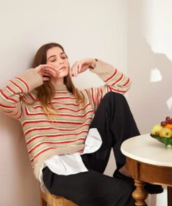 Work sweater from neck down with stripe pattern according to diagram in Sunday and Tynn Silk Mohair.