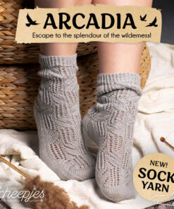 Arcadia van Scheepjes bestaat uit 75% Superwash Scheerwol en 25% Polyamide. Het is warm en ademend dankzij de natuurlijke eigenschappen van wol, de slijt-vastheid en onderhoudsvriendelijkheid komt voort uit de combinatie van wol met polyamide. Arcadia is bedoeld voor breiers die op zoek zijn naar een sokkengaren uit het middensegment en is machinewasbaar. Het heeft een geweldige stekendefinitie en voelt licht rustiek aan, het garen wordt snel zachter bij het verwerken. Arcadia is verkrijgbaar in zelfstrepend, tonale en effe kleuren die de mogelijkheiden bieden voor het mixen en matchen van hakken, tenen en meer! Het garen is ook geschikt voor andere projecten, zoals sjaals en kledingstukken.